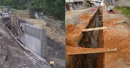 Mejoramiento del sistema de Aducción de la Planta de Tratamiento El Ronquillo de Cajamarca mediante la instalación de una nueva línea de tubería de Acero y Hdpe. Movimiento de Tierras y Construcción de muros de contención y diversas estructuras de concreto y metálicas.