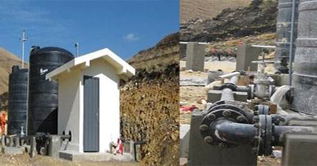 Instalación de diversas líneas de tuberías de Hdpe y PVC, construcción de Casas de Fuerza y Obras Civiles del Sistema de Alcantarillado y Derivación de Agua Potable a Diversos Tanques Cisterna y Tanques elevados; conexiones domiciliarias, etc.