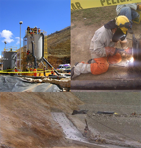 Ingeniería y ejecución de proyectos integrales, para sistemas de drenaje y control de erosión en proyectos mineros a cielo abierto. Construcción y mantenimiento de sistemas de lixiviación, manejo de soluciones, drenaje, líneas de conducción; impermeabilización de pilas, pozas, diques, canalizaciones y sistemas de contingencia.