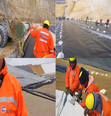 El crecimiento de la industria a dimensiones gigantescas, ha requerido soluciones también grandes, como el uso de GEOSINTÉTICOS; pues los diferentes fines que se persiguen con ello así lo exigen; cómo prevenir la propagación de agentes contaminantes, reducir la pérdida de soluciones ricas, modificar o recuperar la condición de las superficies o masas de suelo, encausar fluidos, e incluso recuperar y mejorar la condición natural de terrenos; impermeabilizando y cubriendo superficies o dándoles otra configuración. El uso de estas tecnologías ha permitido que la industria de la construcción y sobre todo la gran minería, minimice los impactos negativos al medio ambiente, buscando la armonía entre la naturaleza y el desarrollo del hombre. En GEOS INGENIEROS SRL, asumimos el reto de trabajar, hasta en las condiciones más difíciles, manteniendo los más altos estándares de seguridad y medio ambiente; ya que contamos con el equipo suficiente para ello, así como el soporte que se requiere.